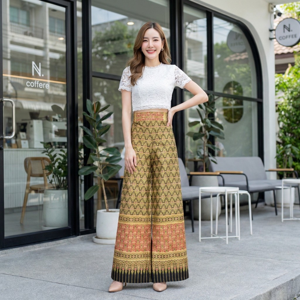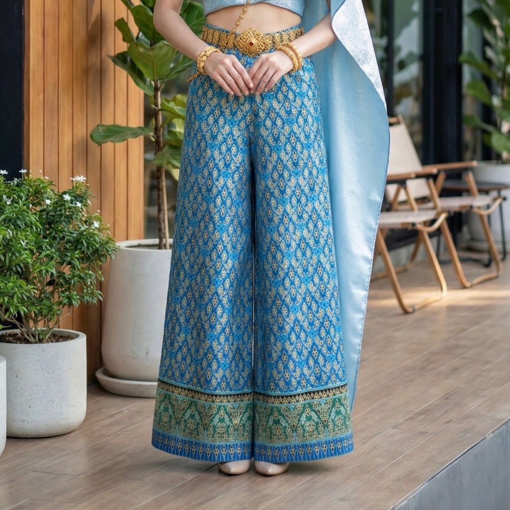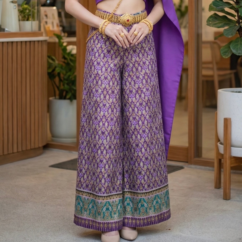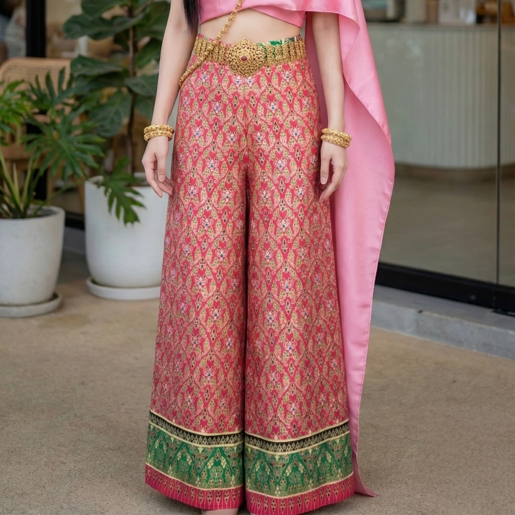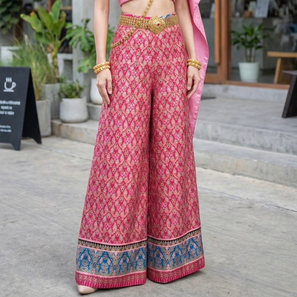 Gold Printed Fabric Pants Beautiful Shiny Color Does Not Fade. No Peeling