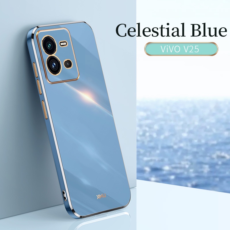Gold Square Side Frame Plating Phone Case For VIVO Y22 Y22S Y33S Y77 Ultra Thin Full Coverage Glossy Soft Back Camera Protector Shell