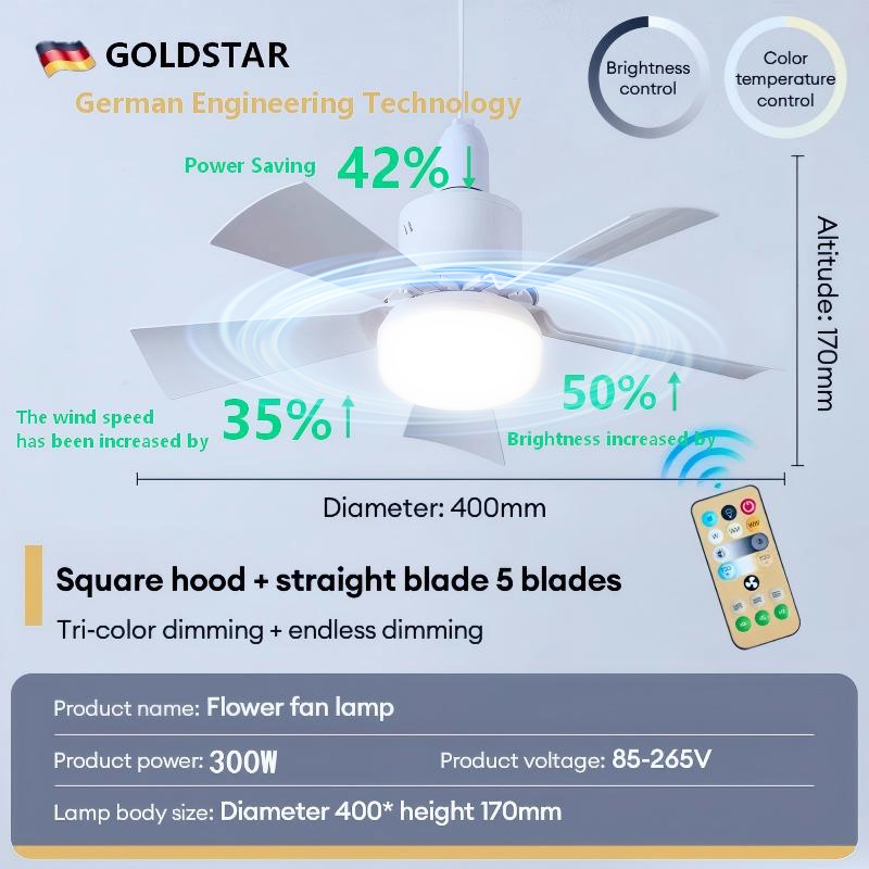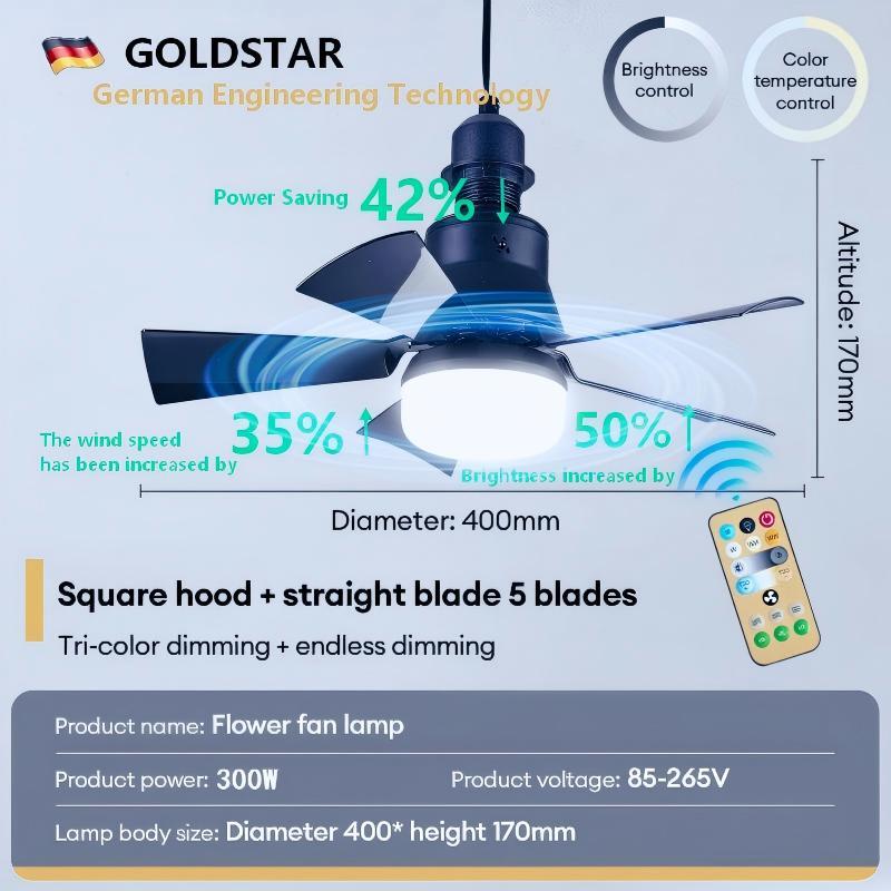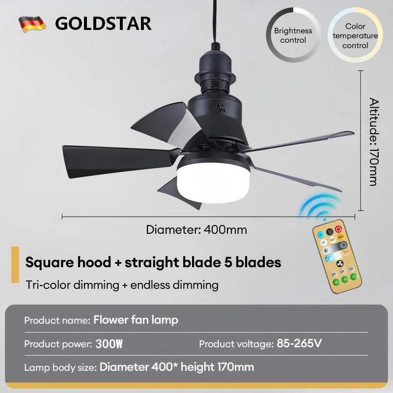 Gold Star Quiet Ceiling Fan With Light LED light Cyclone Tri Colors 5 Blades With Remote Control