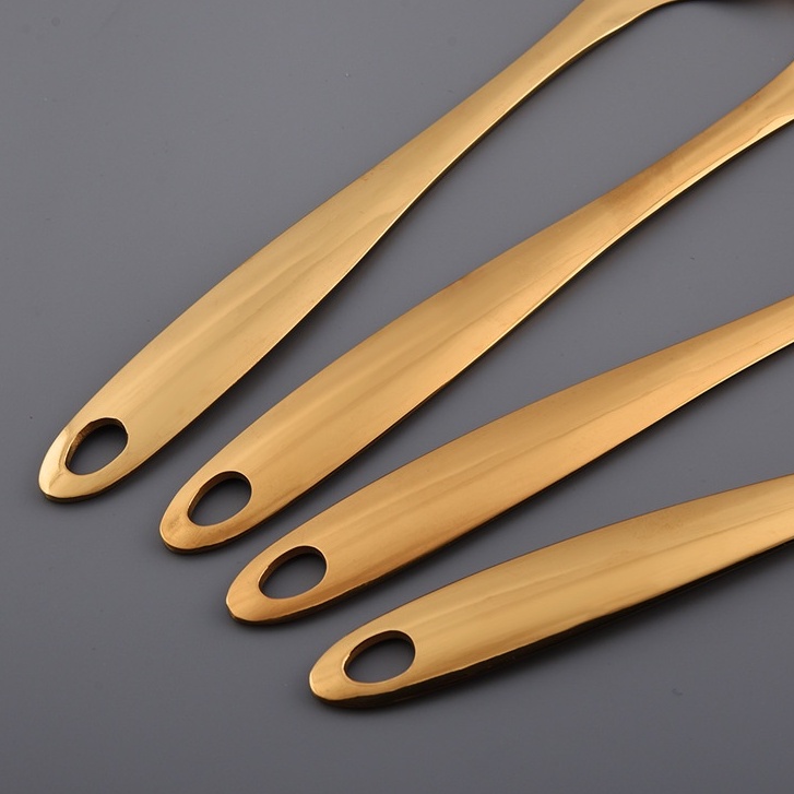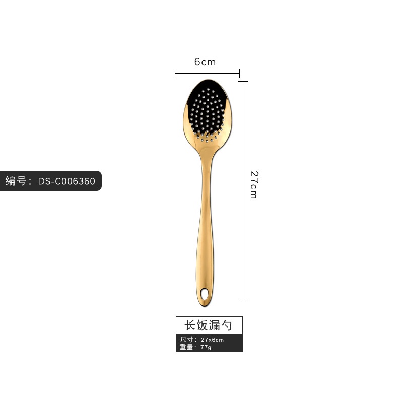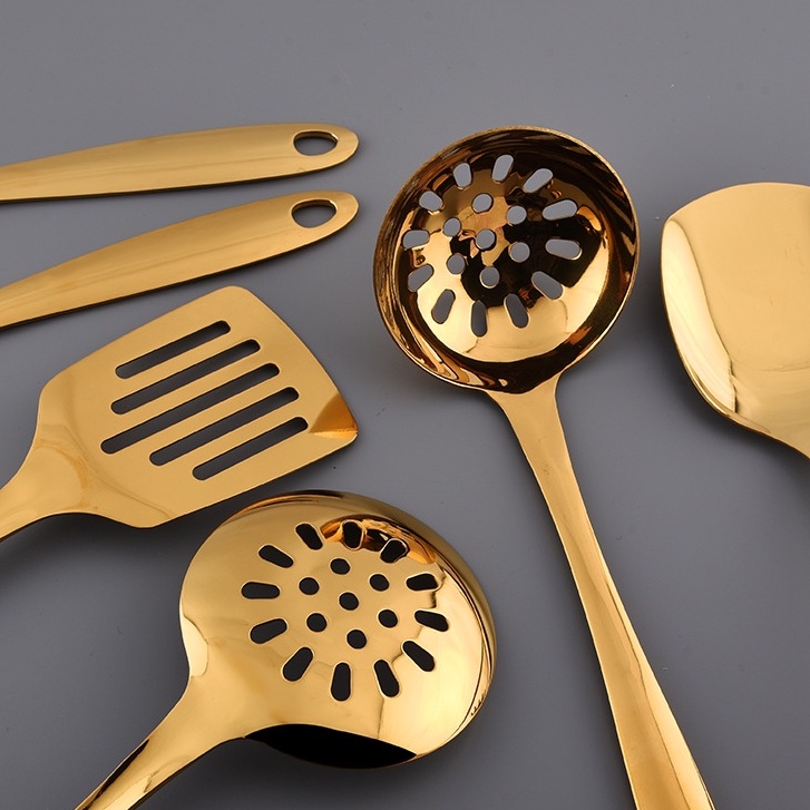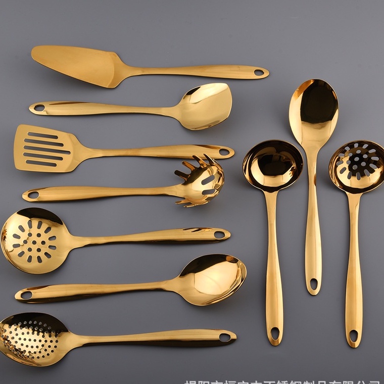 Gold Thicken Stainless Steel Serving Spoon Colander Soup Spoon Ladle Spatula Pasta Cooking Tools Kitchen Utensils Set