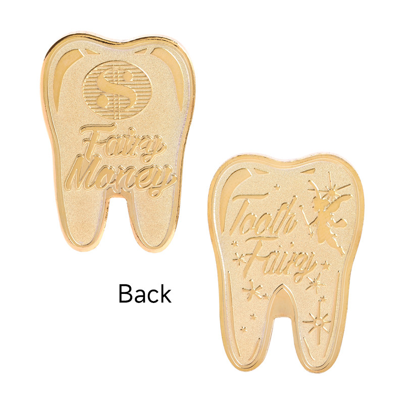 Gold Tooth Shaped Tooth Fairy Commemorative Coins Set Featuring Fairy Money and Tooth Fairy Designs Perfect for Collectors and Fans of Western Folklore