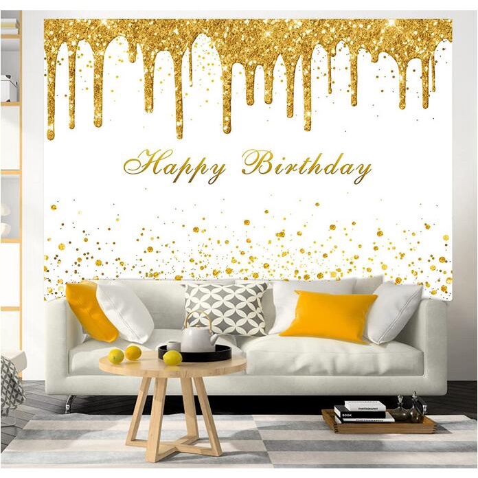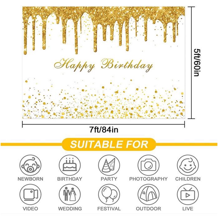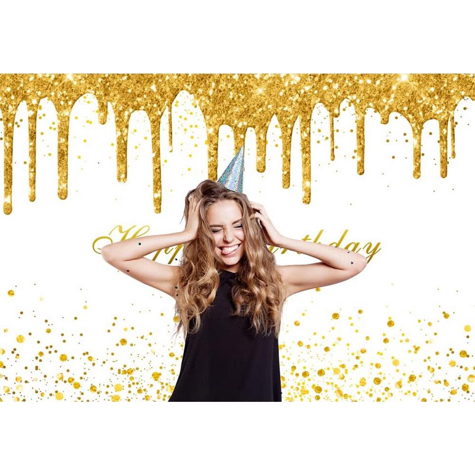 Golden Birthday Party Backdrop for Girls Women Gold and White Bokeh Dots Glitter Photography Background Happy Birthday Party Decorations Supplies Banner 7x5ft