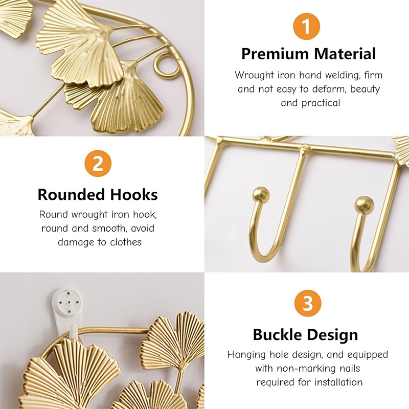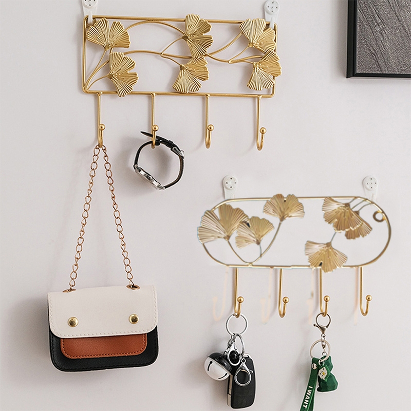 Golden Ginkgo Leaf Hook Wall Mounted Ginkgo Leaf Shape Metal Stoarge Hanger Modern Antirust Decor