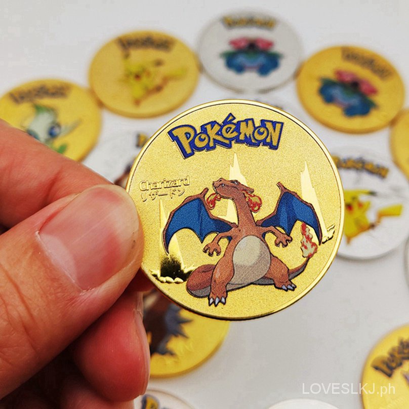 Golden Pokemon Coins Metal Pikachu Coins Charizard Mewtwo Pikachu Metal Pokemon Card Round Game Collection Card Anime Toys MR6F