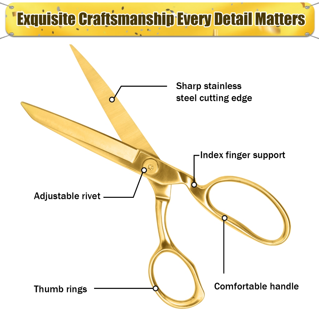 ribbon cutting scissor grand opening scissor Golden Scissors Opening Ribbon Cutting Scissors Tailor Scissors Sewing Scissors 8" Gold Fabric Scissors Sewing Scissors for Home Office (Gold) In stock Locally shipped for fast delivery