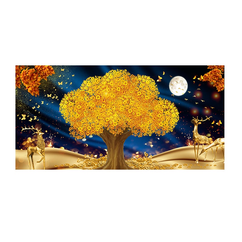 Golden Wealth Money Tree Canvas Painting Home Room Wall Decor Print Picture Artwork (No Frame)