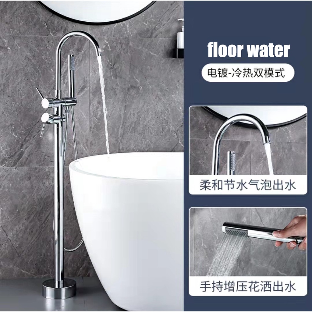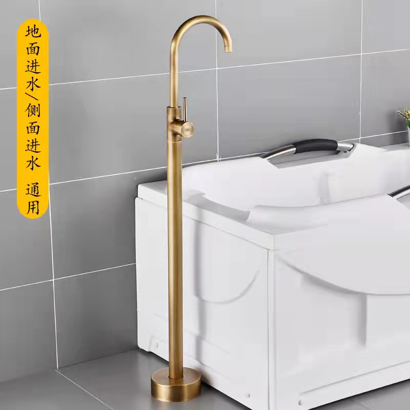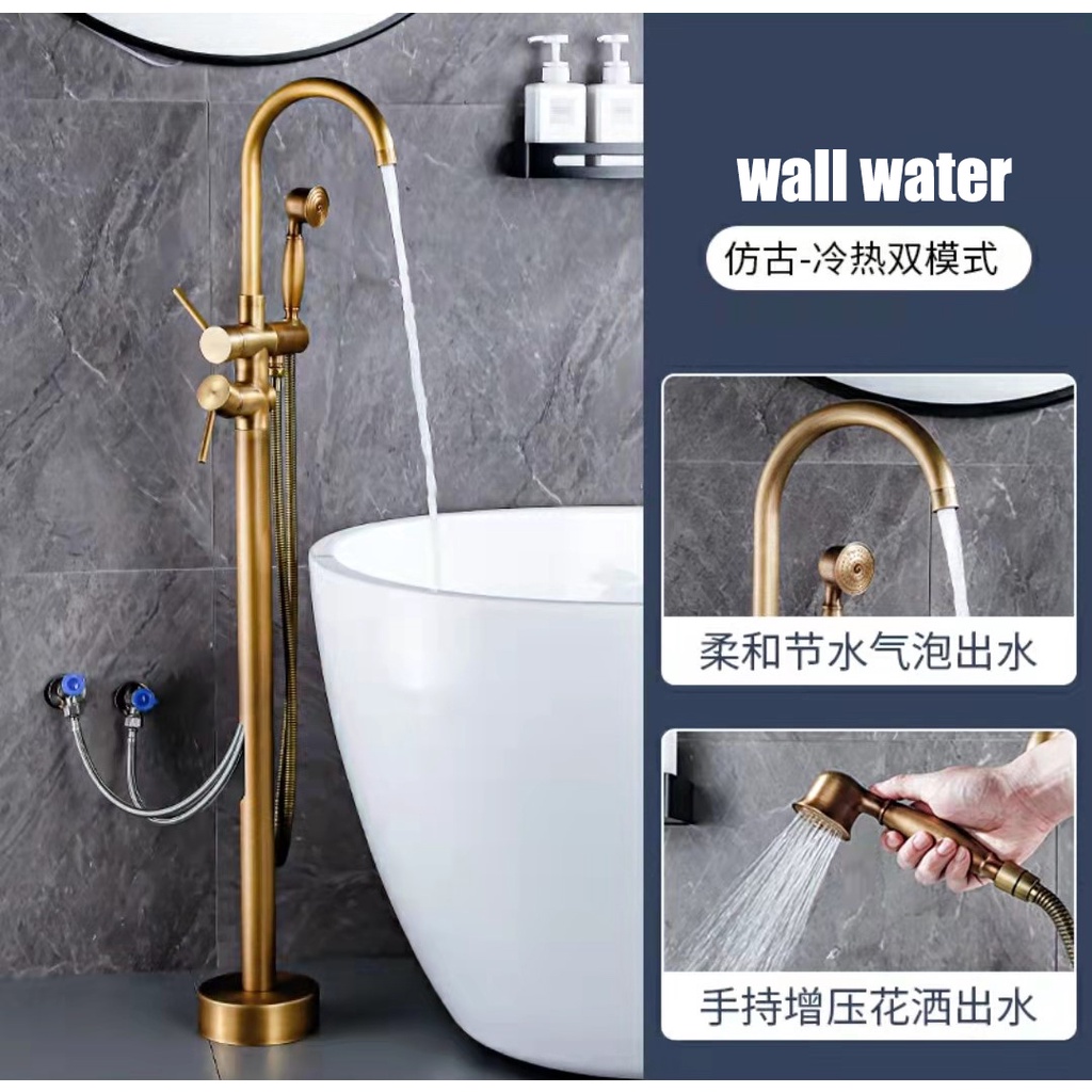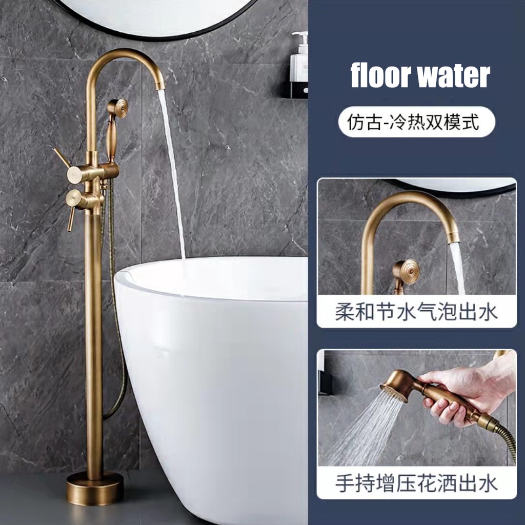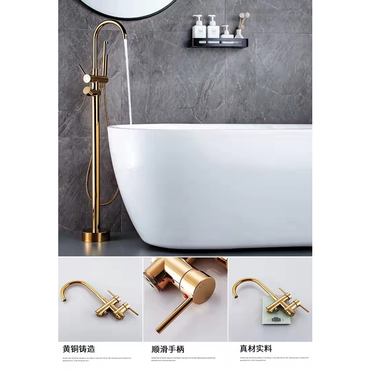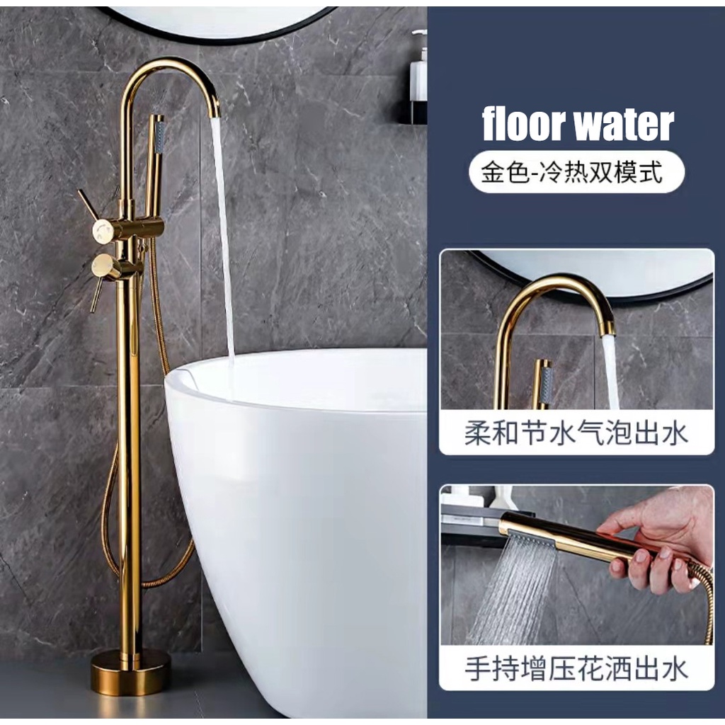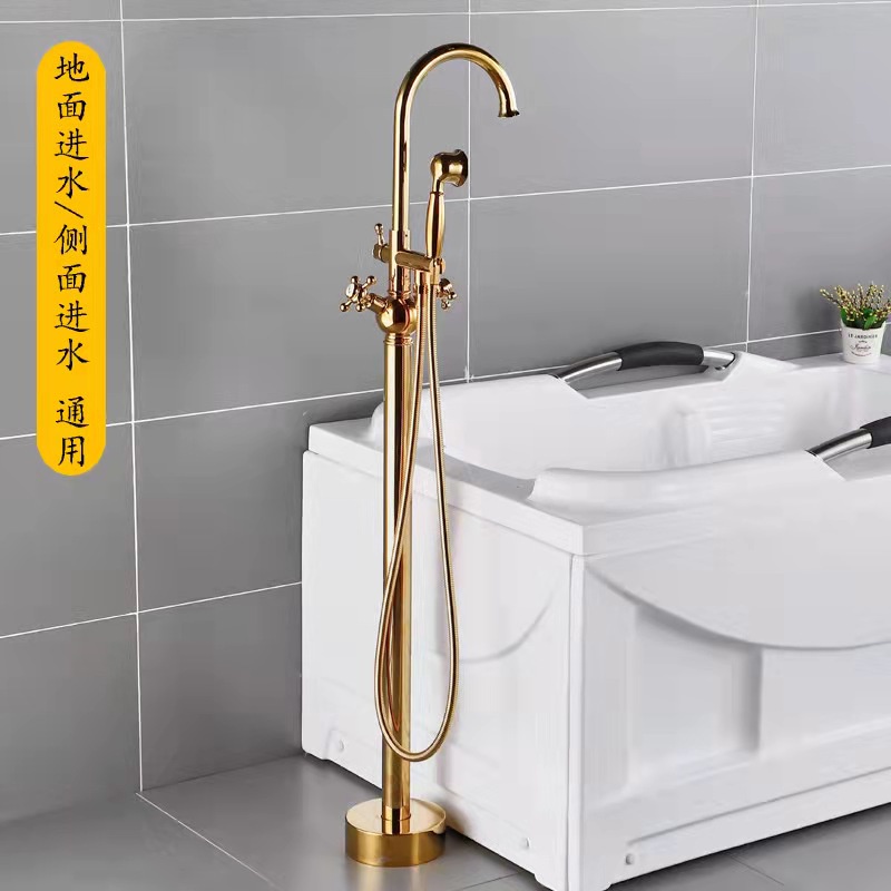 Golden vertical bathtub shower floor faucet full copper heavy shower independent hot and cold hotel floor shower sets