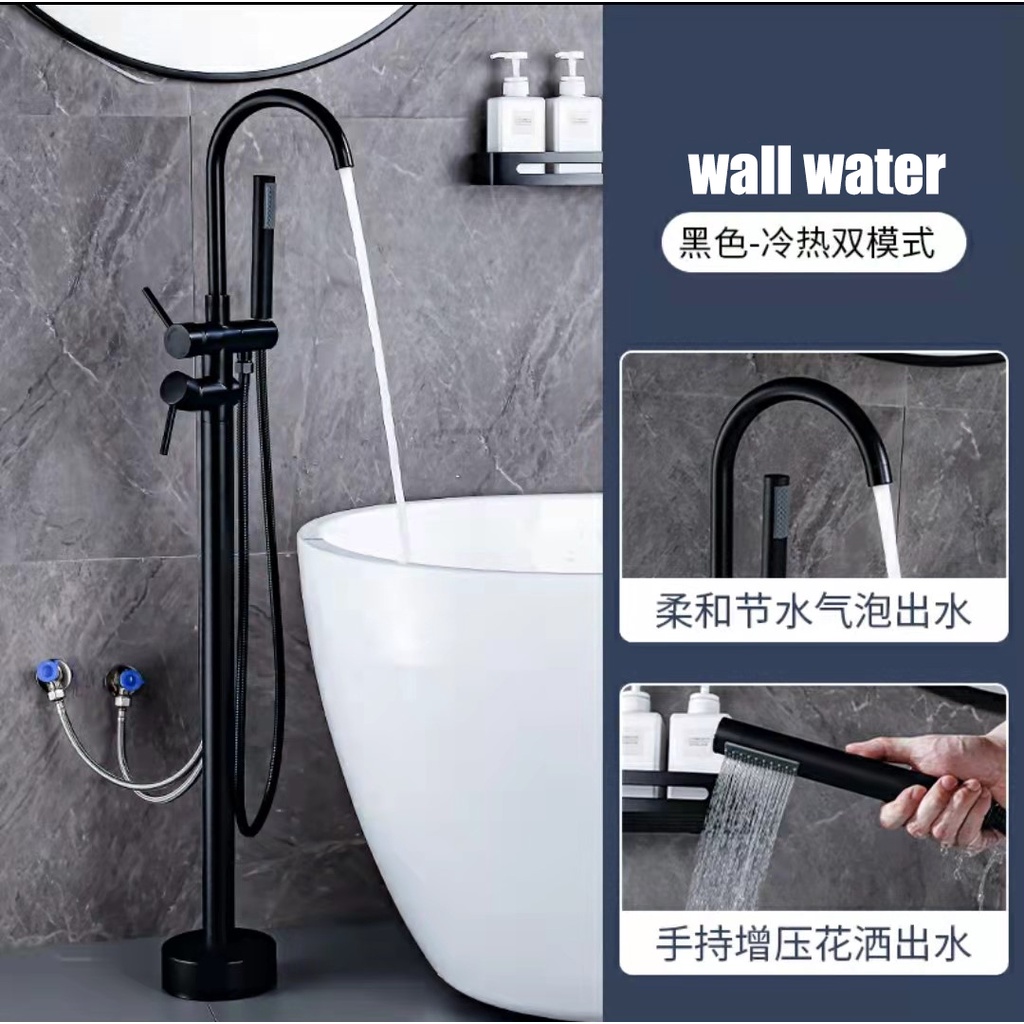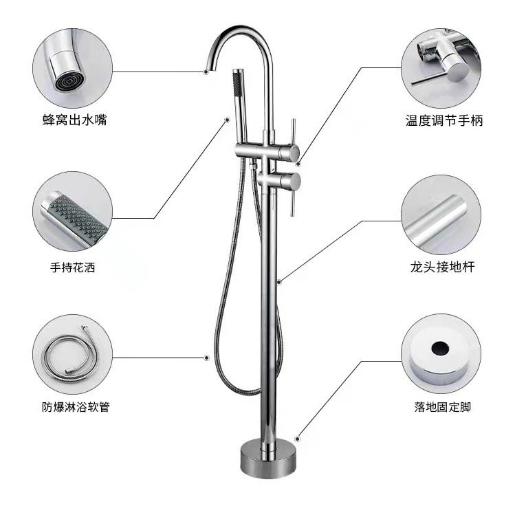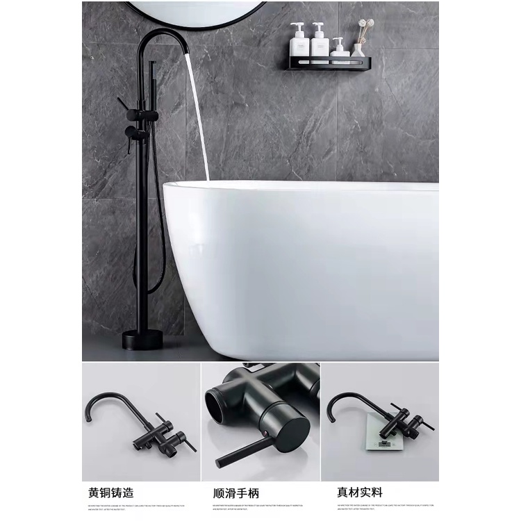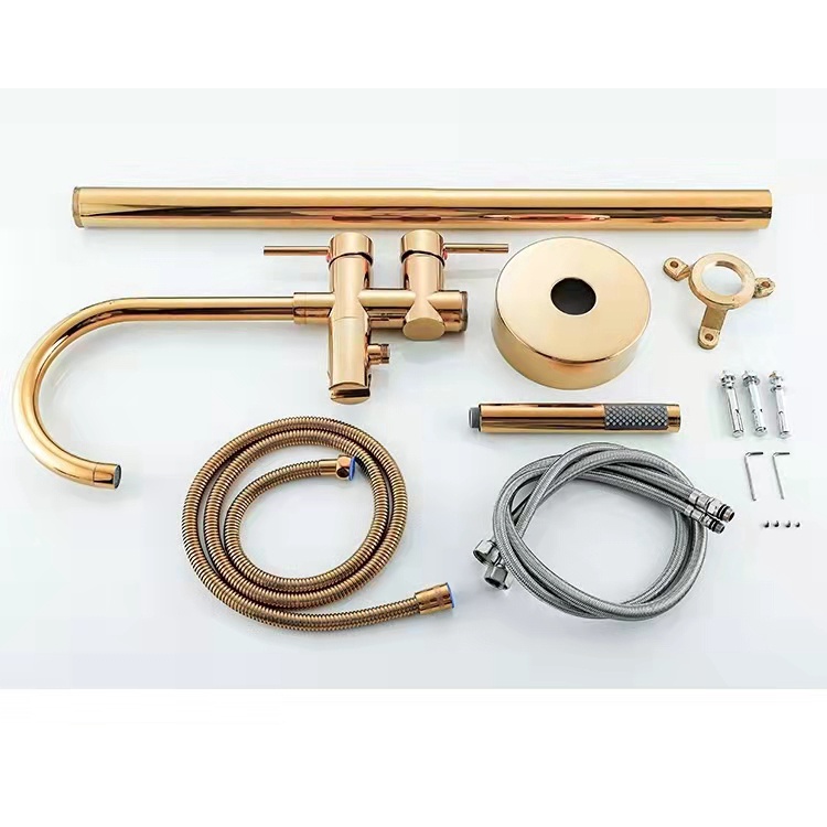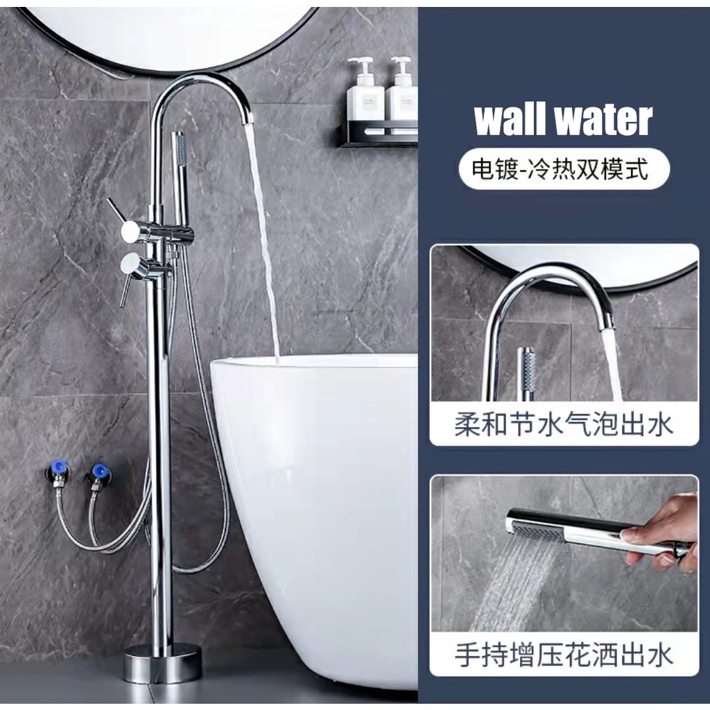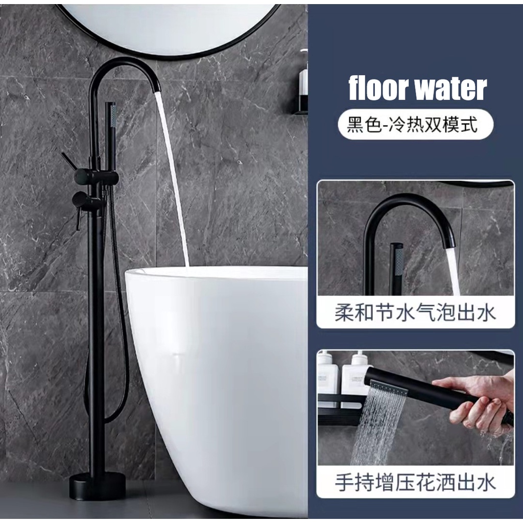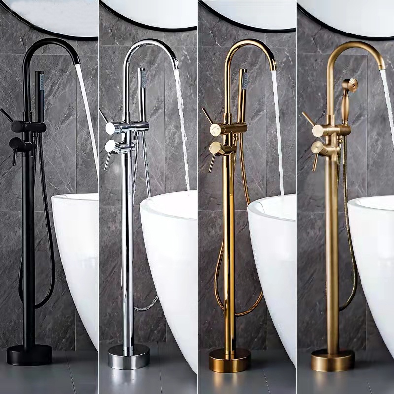 Golden vertical bathtub shower floor faucet full copper heavy shower independent hot and cold hotel floor shower sets