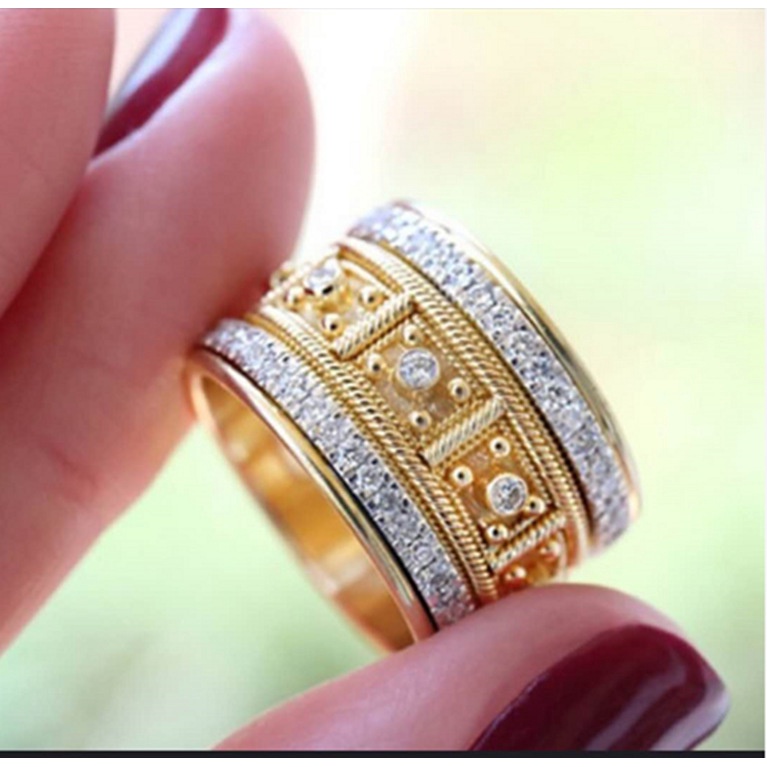 Goldkingdom Fashion Ready Stock Korea Jewellery Gold Plated Bangkok Gold Plated Dichroic Zircon Diamond Ring for Women