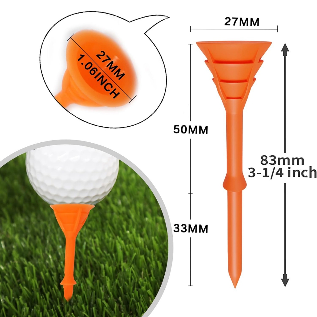Golf Tees Plastic 3 1/4 inch Unbreakable Upgraded Bulk 50 Pack Reduce Friction Side Spin Stable