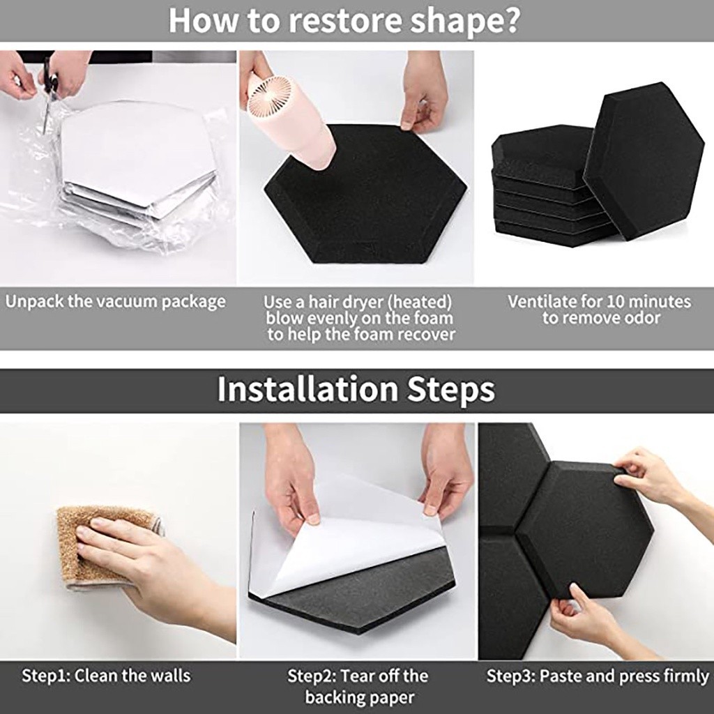 Golivemic Foam HD Hexagon Acoustic Panels Beveled Edge Sound Proof Foam Panels Sound Padding Studio noise reduction Student Home Furnishings