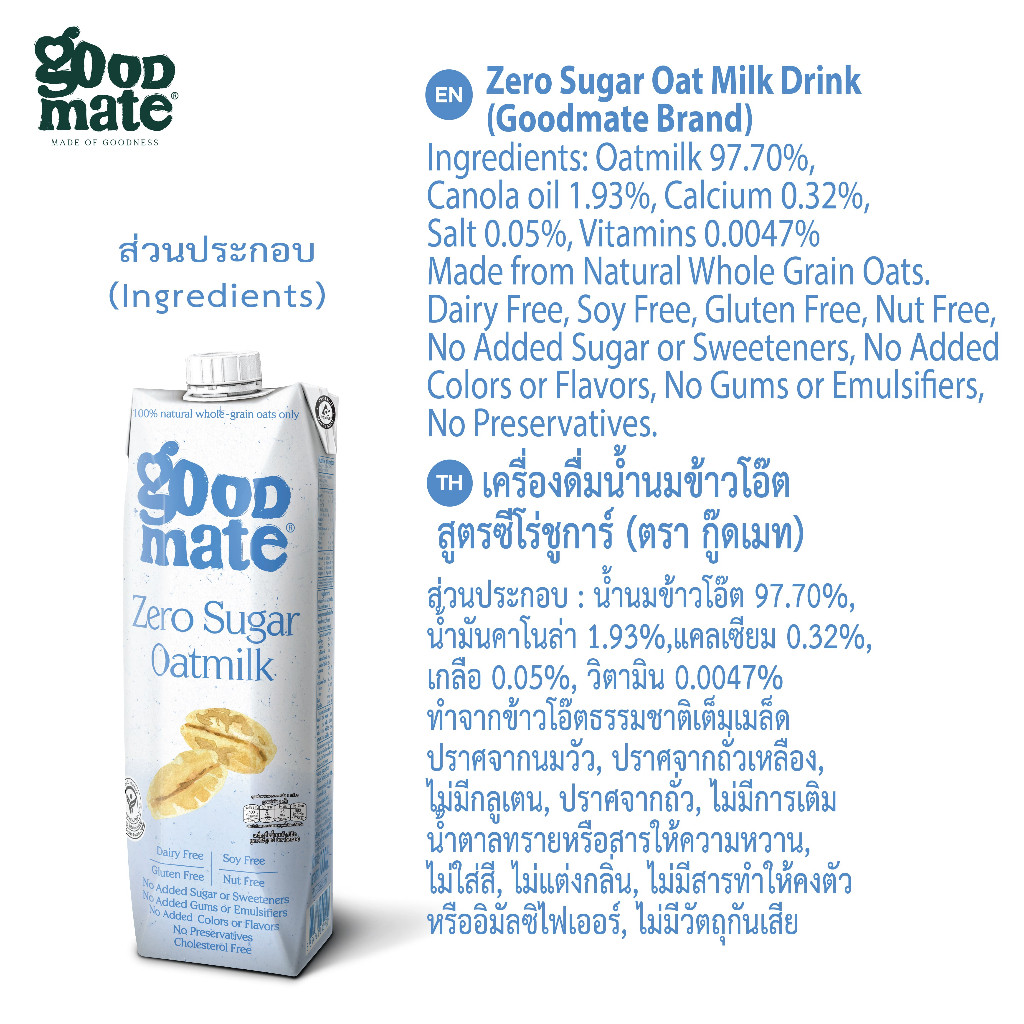 Goodmate Zero Sugar Oat Milk 1L - 12pcs/BOX
