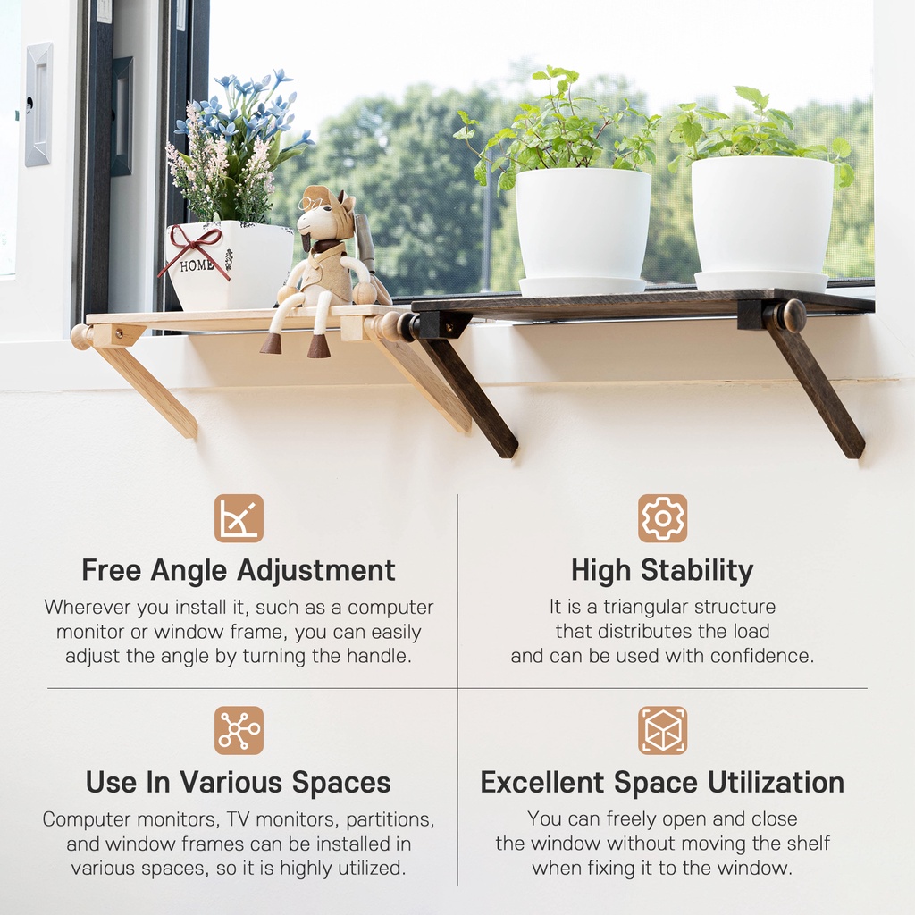 Goodsdeco Floating Shelf, Wood Floating Window Shelves Decoration for Living Room, Office, Bedroom, Computer Monitor Shelf, TV Shelf, Window Plant Shelves, Window Shelf for Plants Indoor