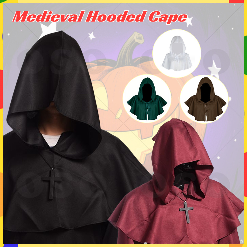 Gothic Medieval Cloak With Hood Halloween Carnival Costume Priest Robe Cosplay PH Warehouse