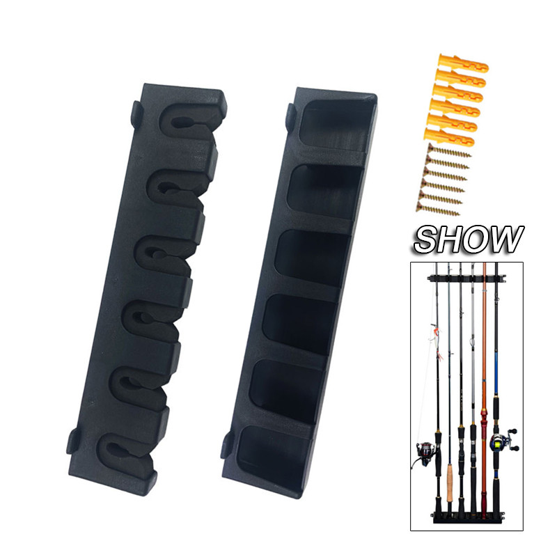 Goture 6 Slots Vertical/Horizontal Fishing Rod Holder Wall Mounted Display Rack Stand Plastic Bracket Fixed Collection