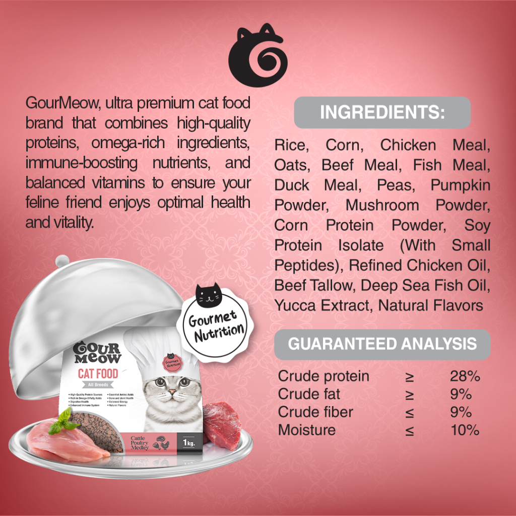GourMeow Adult Cat Dry Food Cattle Poultry and Seafood Poultry Medley 1kg Collection