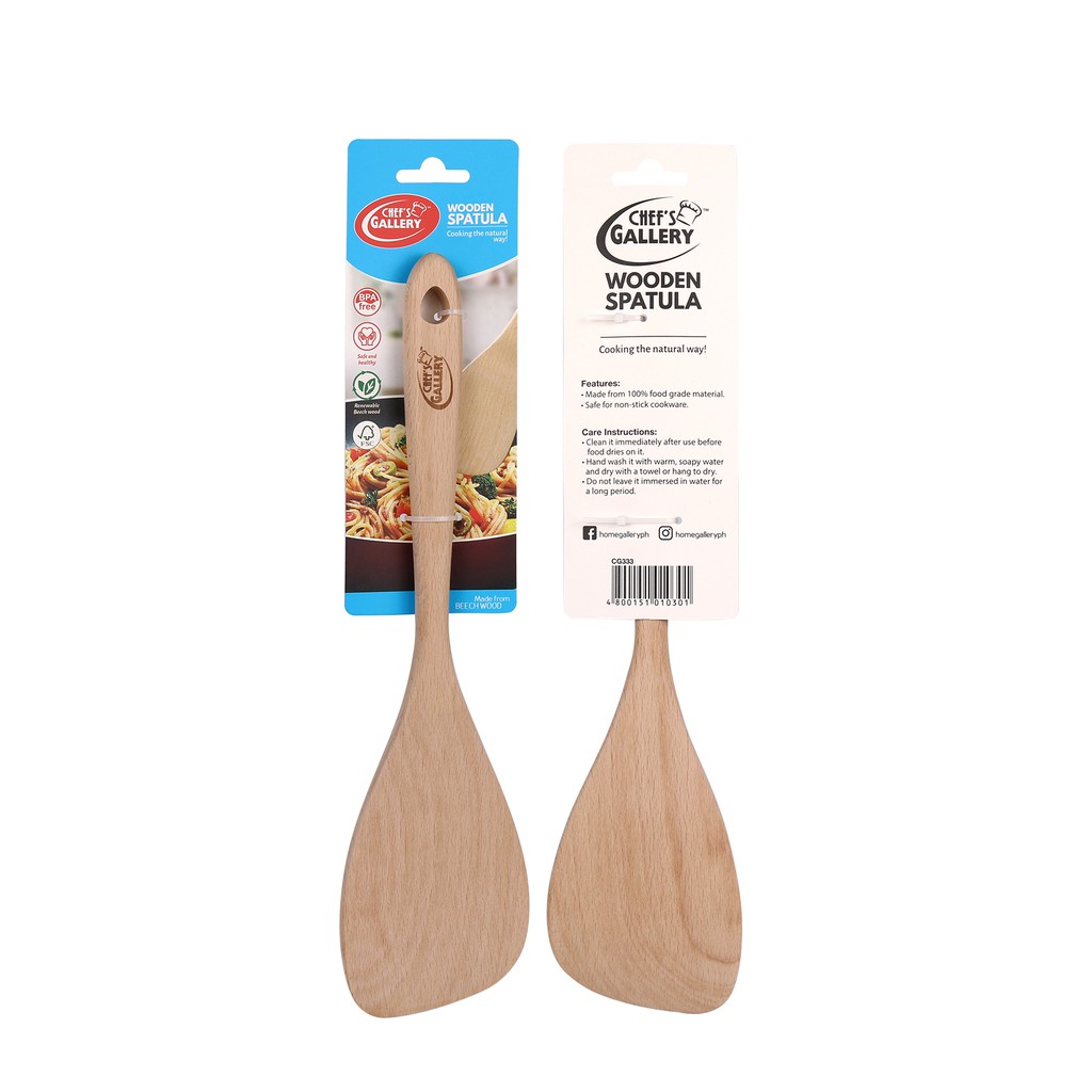 Chef's Gallery Wooden Spatula 100% Food Grade Material Safe for Non-stick Cookware