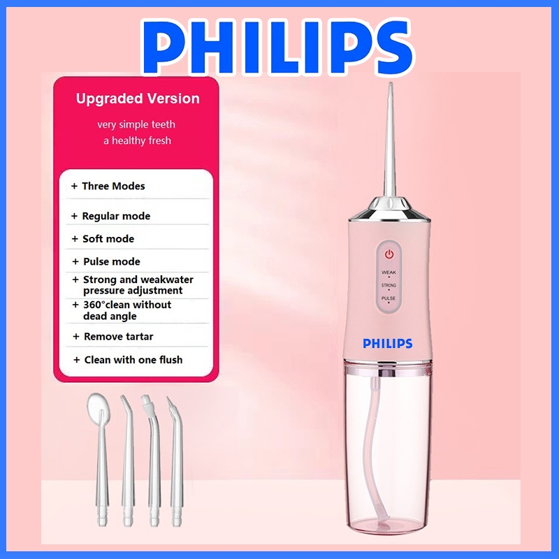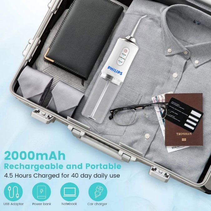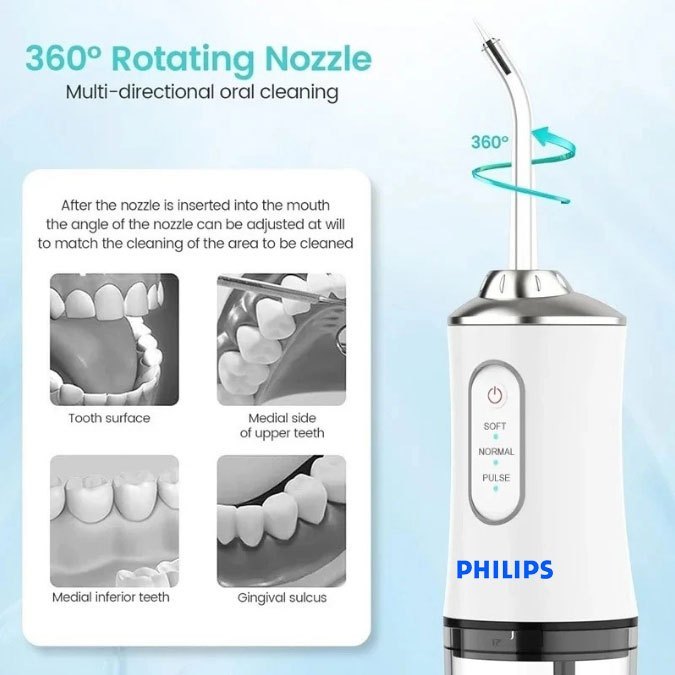 Oral Care Water Flosser with 4 Heads & 260ML Capacity Rechargeable 3 Modes Water Jet