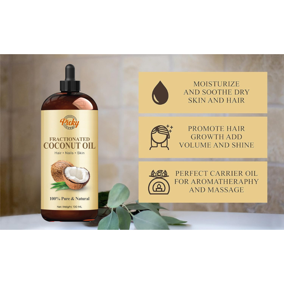 Fractionated Coconut Oil 100% Pure and Natural - Premium Grade Oil for Skin & Hair etc.