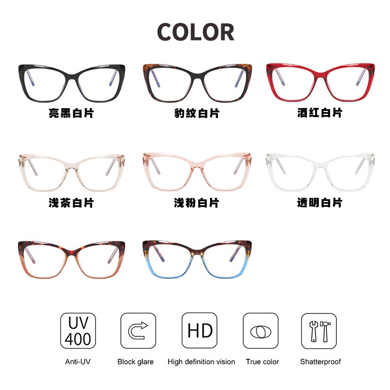 Graded Eyeglasses with Grade -100 150 200 250 300 350 400 Western Style Imported Women Cat Eye Anti Blue Light Eyeyglasses Fashion Trend Anti Radiation Replaceable Lens Nearsighted Glasses