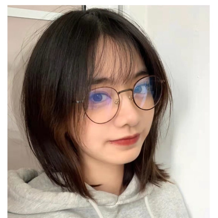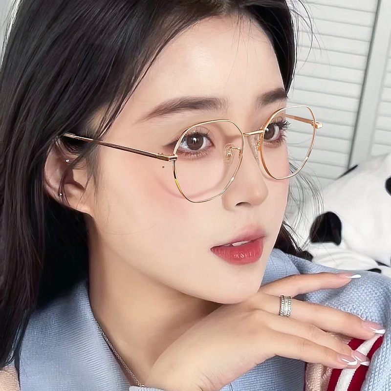 Graded Eyeglasses with Grade -50 100 150 200 250 300 350 400 Myopia glasses Circular frame women's high-value student models anti-blue light display face small flat mirror 009