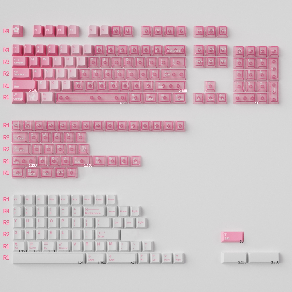 Gradient Pink Keycaps PBT+PC Light through Cherry profile Keycaps set for MX Switches Alice Mechanical Keyboard