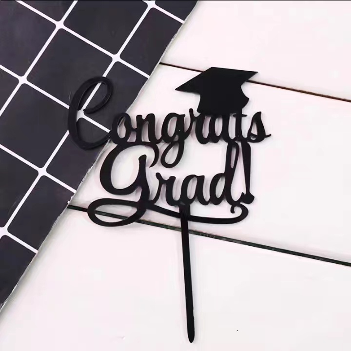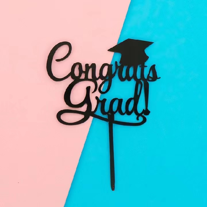 Graduation theme Congrats Grad cap acrylic cake topper baking props dessert decorations materials