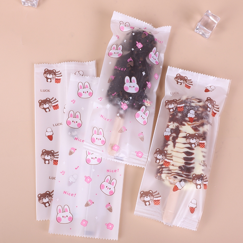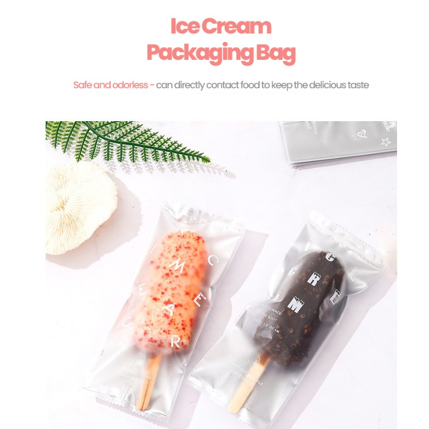 Graham Bar Packaging 8x19 CM Plastic Bag For Ice Cream Handmade Pastry Heat Seal Wrapper 50Pcs