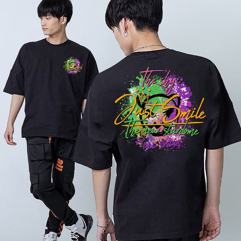 Graphic Print Front and Back Fashion Tees round neck white tshirt unisex