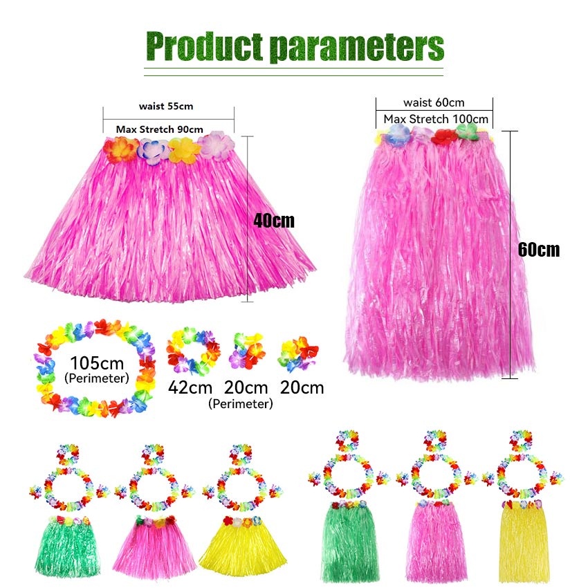 Grass skirt straw hat skirt Hawaiian clothing set Hula dance costume women's party attire 40/60cm