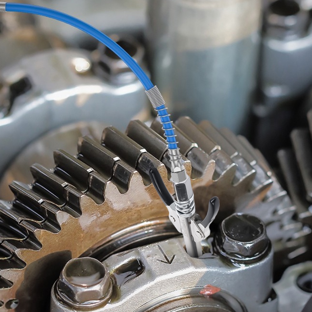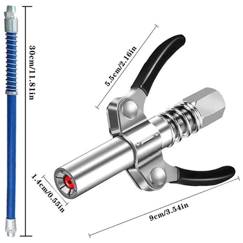 Grease Gun Coupler,Double Handle Grease Gun Tips Quick Lock and Release with 30cm Spring Flex Hose
