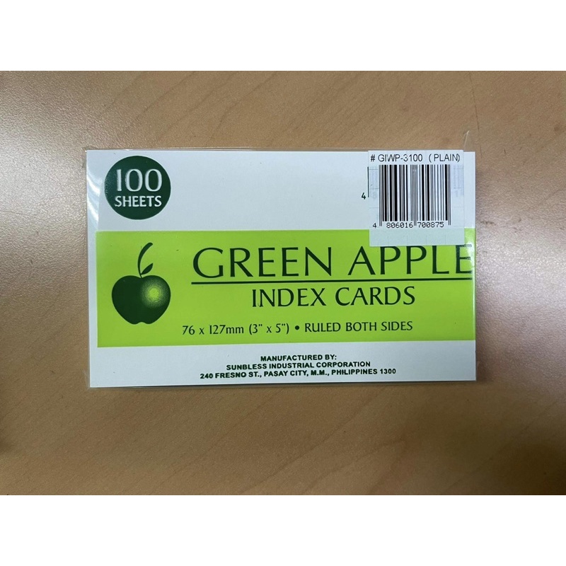 Green Apple Index Card plain white (NO LINE) (100sheets)