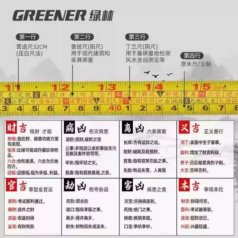 Green Forest Authentic Luban Ruler 42.9 Old Style Feng Shui Construction Ruler Dinglan Ruler Double-