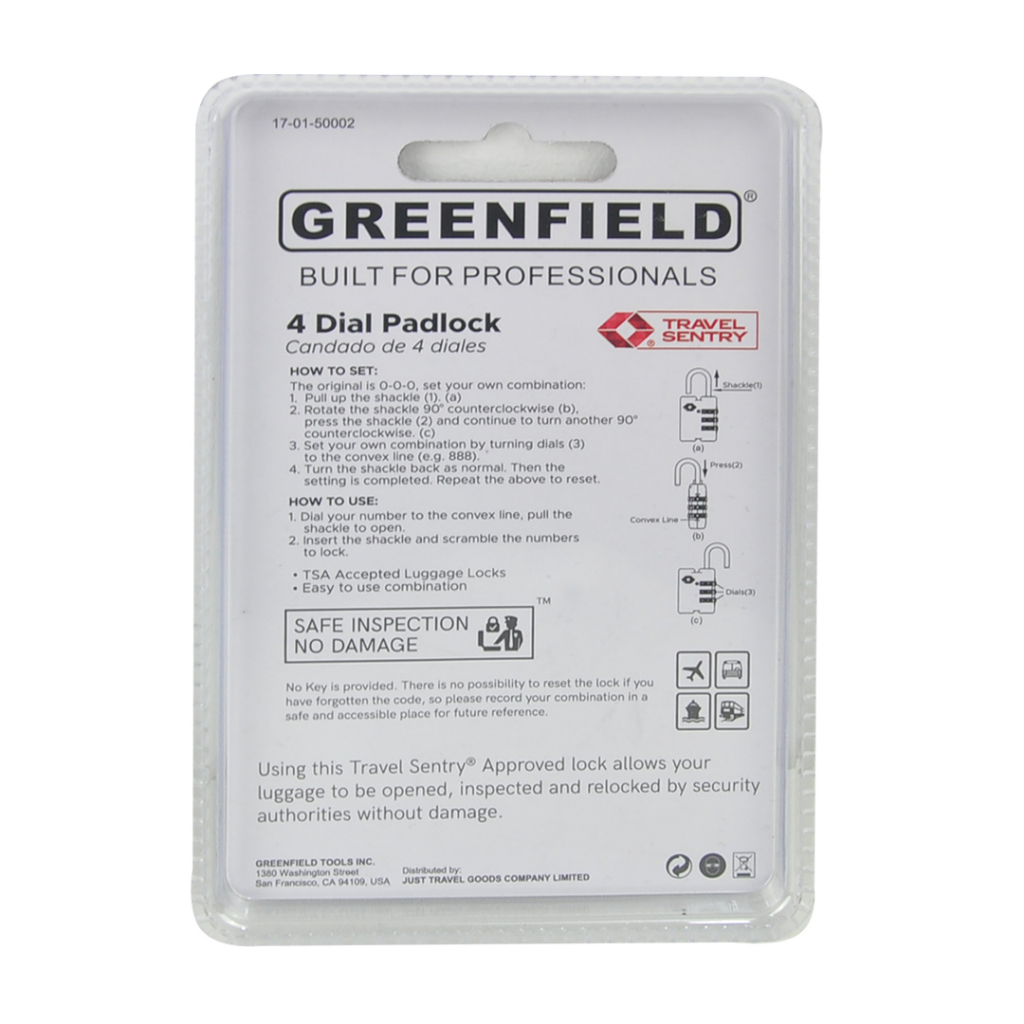 Greenfield 4 Dial Padlock TSA - Luggage Locks