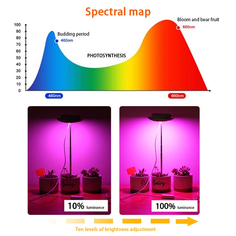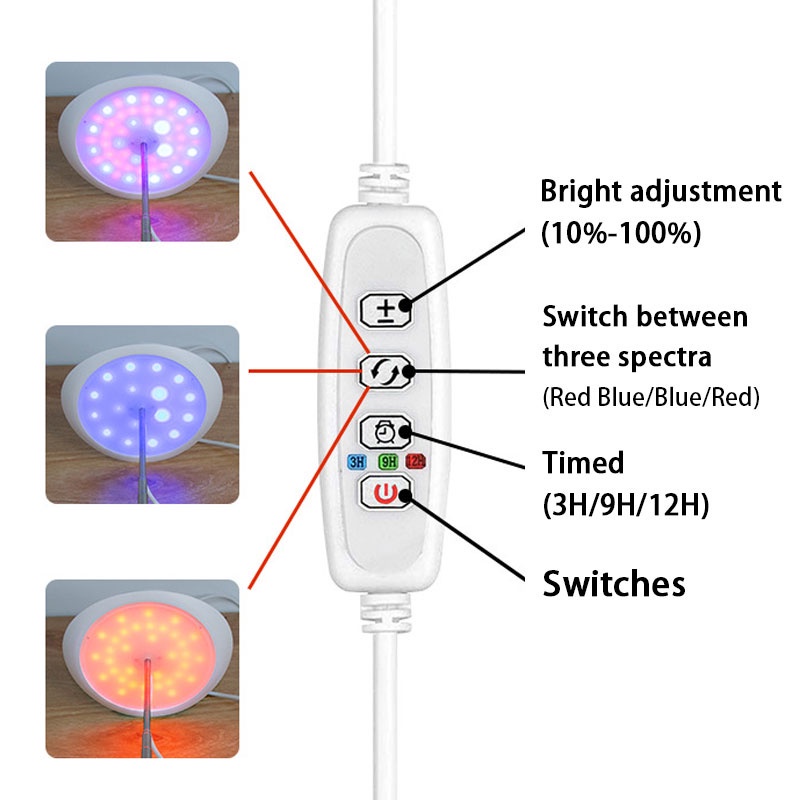 Greensindoor USB LED Grow Light with Timer Tricolor Indoor Hydroponic Potted Plants Lights Succulent 3H 9H 12H Timing Planting Lamp