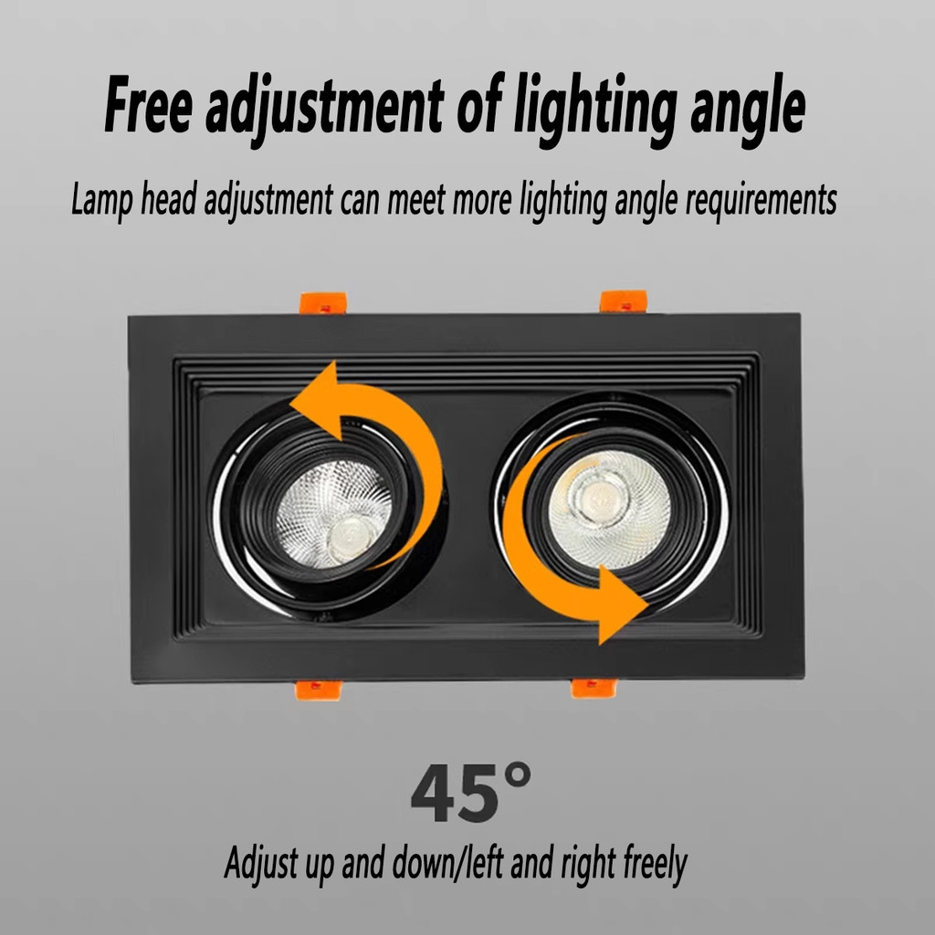 Grille Bucket Spotlight LED Embedded Ceiling Spotlights Adjustable Tri Color Grating Rectangular