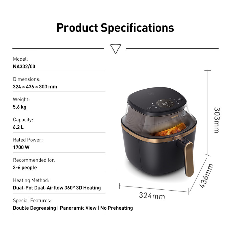 Philips Air Fryers Starfish Series 5.0 Panoramic View Airfryer NA332, 6.2L