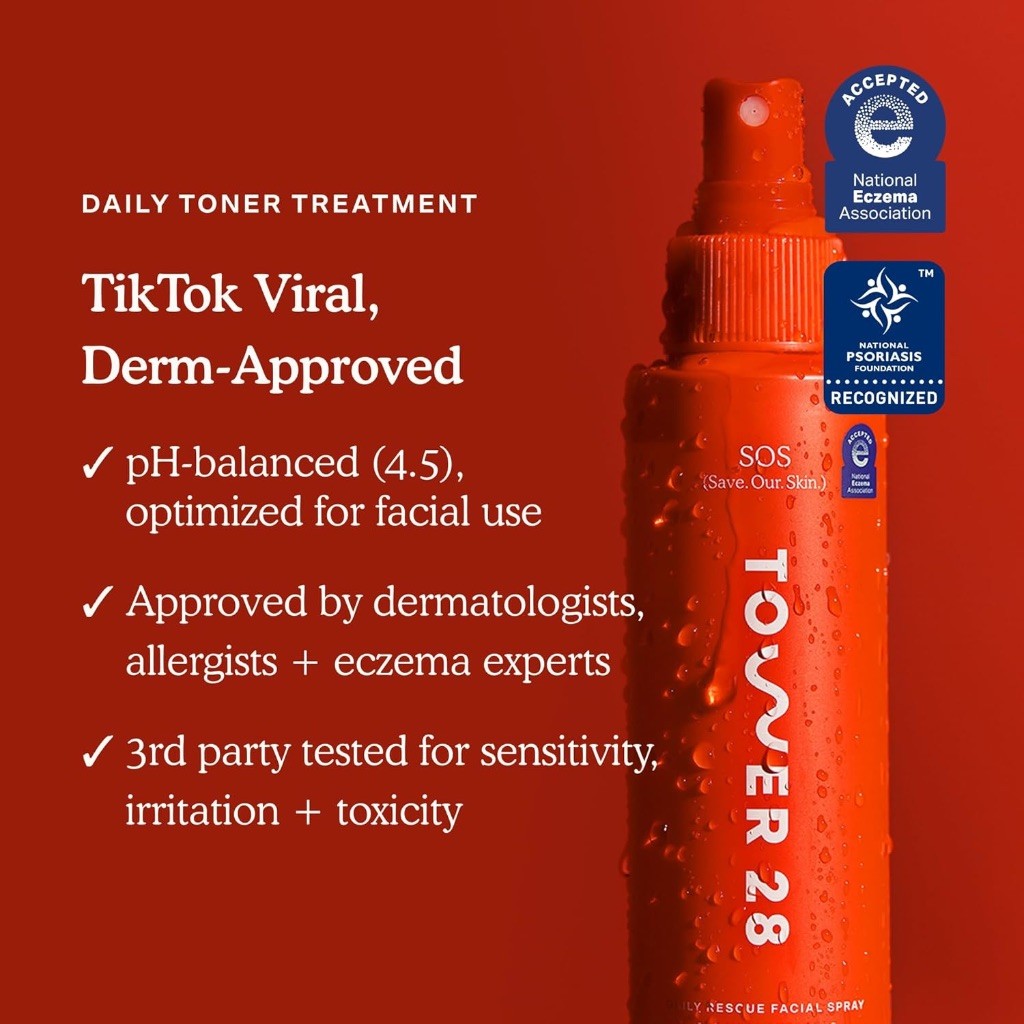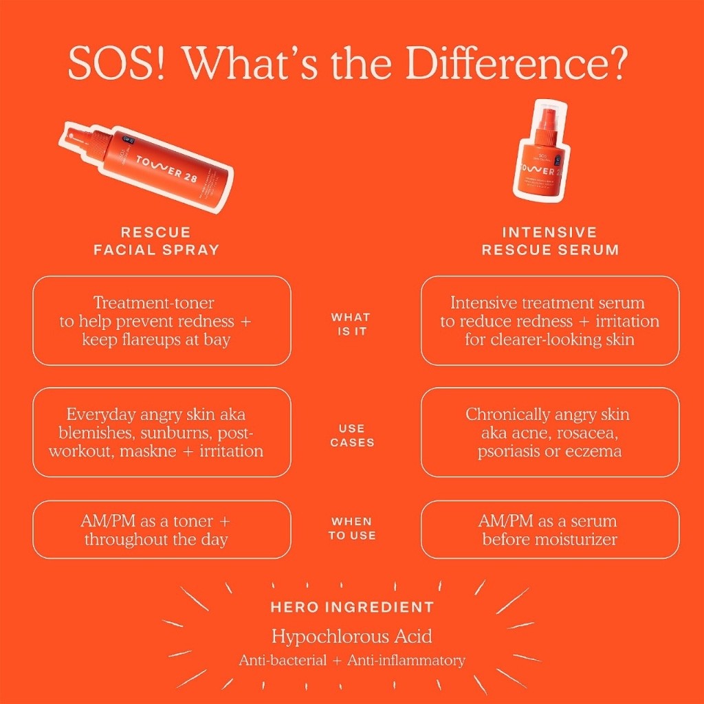 Tower 28 Beauty SOS Daily Rescue Facial Spray with Hypochlorous Acid Acne Pimple Ezczema Treatment