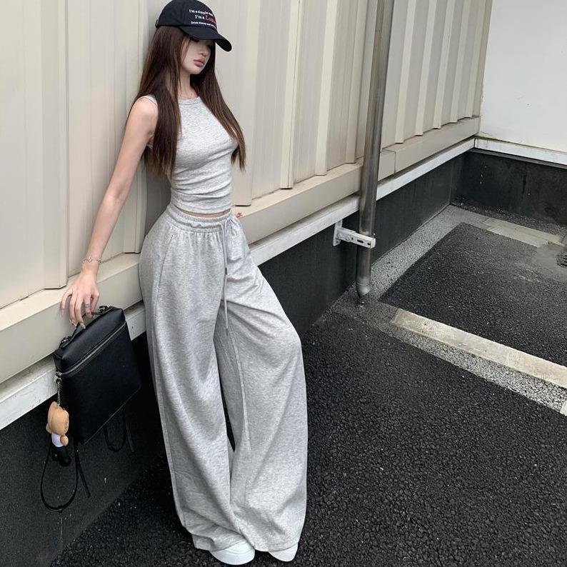 Korean Baggy Acid Gray Sweatpants Womens Pants High Waist Wide Leg Casual Loose Trouser Buy 1 Take 1