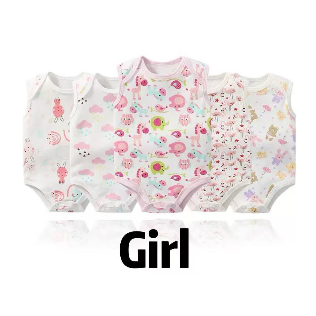MUM LOVE 5 Piece Baby Sleeveless Onesies Jumpsuit Romper Newborn Clothes Overall Unisex 100% Cotton