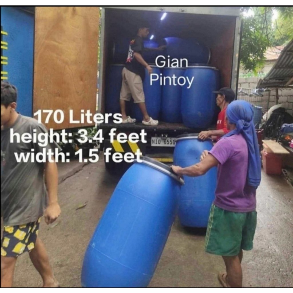 170 Liter Blue Plastic Container Drum with Lid(No Ring Lock) | Heavy-Duty Container