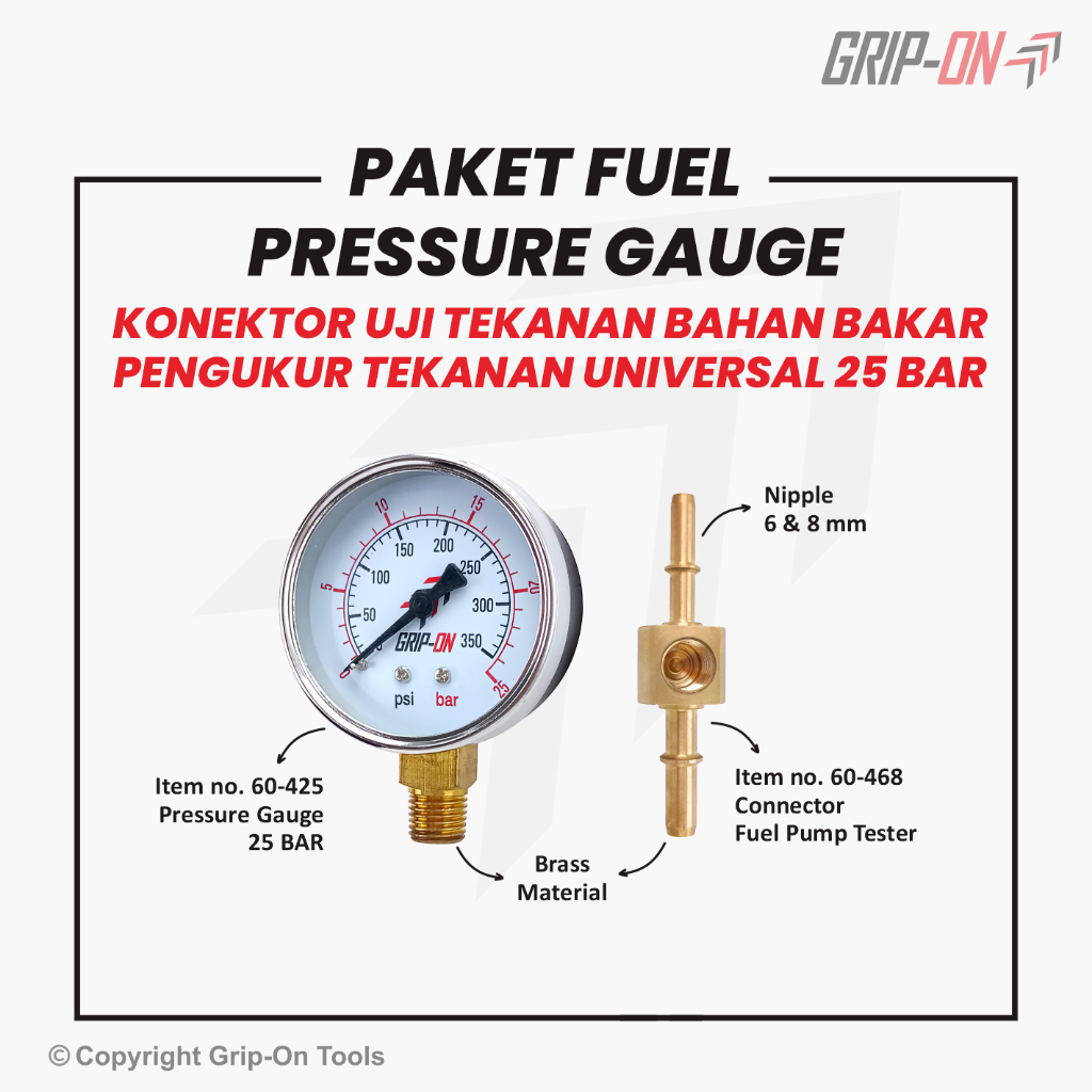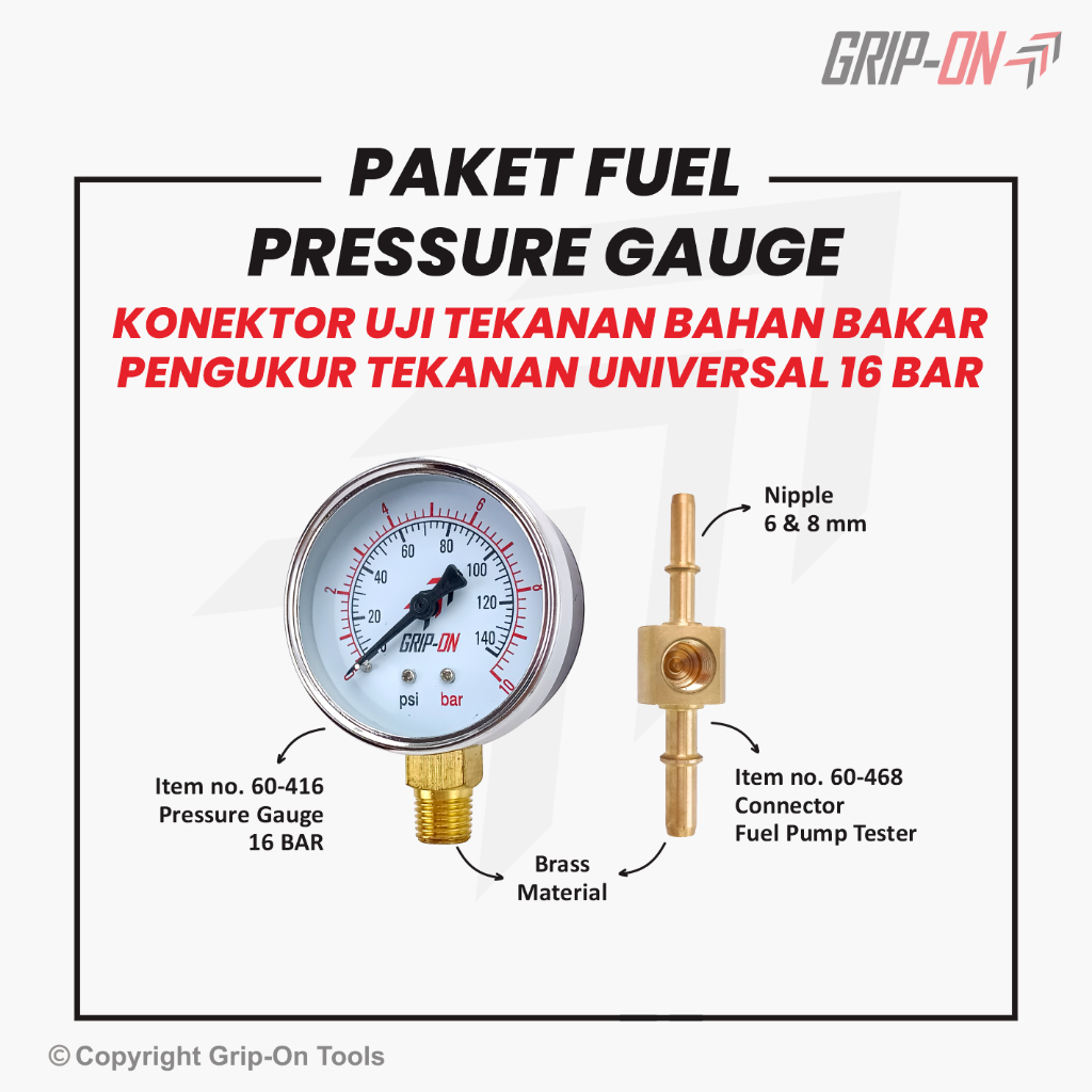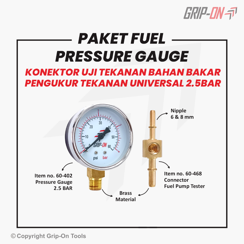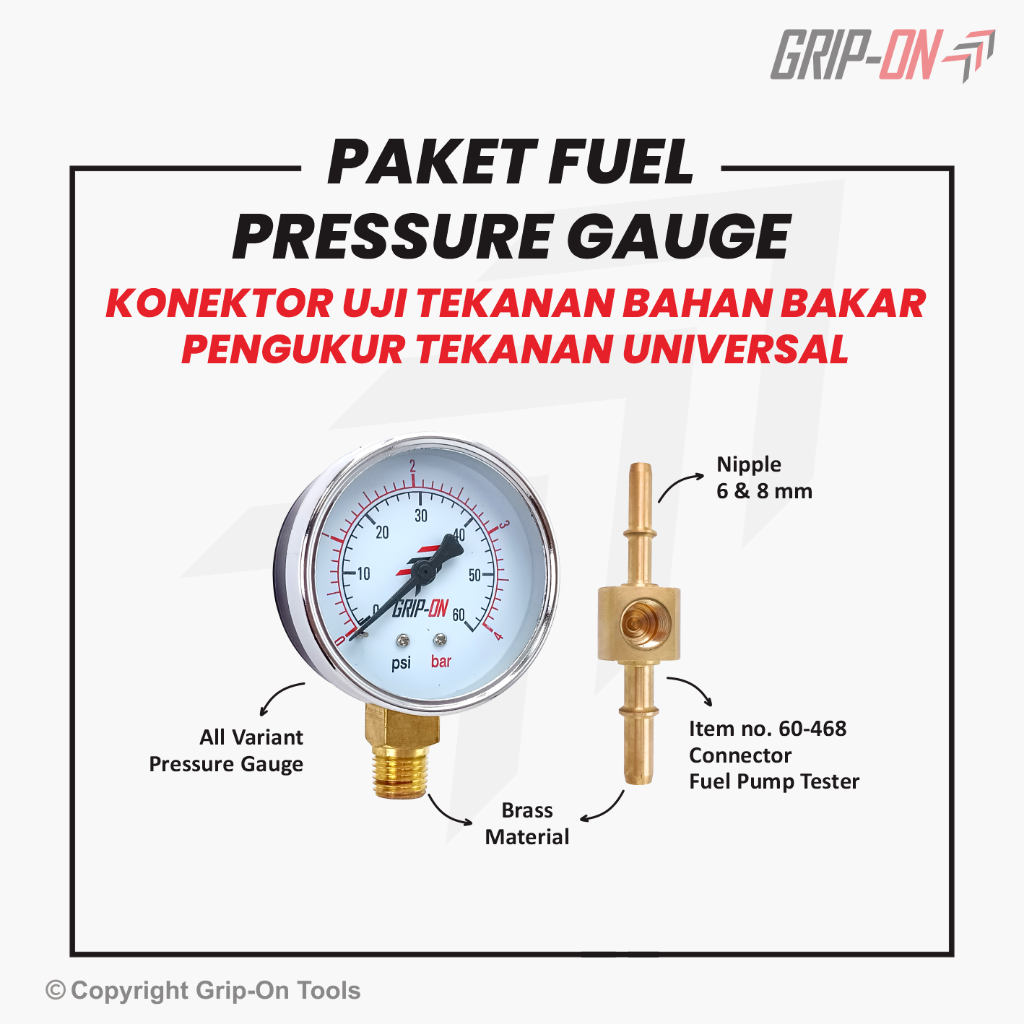 Grip-On Fuel Connector Pressure Gauge Bundling Package - Grip-On Universal Fuel Pressure and Pressure Gauge Connector Package