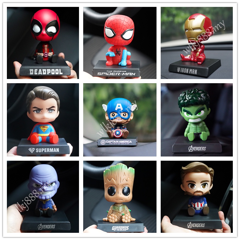 Groot Moving Head Spring Doll Car Decoration Marvel Avengers Spider-Man Iron Man Deadpool Action Figure Toys Model Dolls