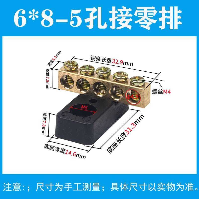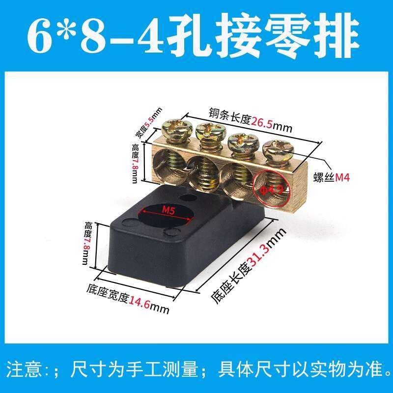 Ground Terminal 4/5/6 Holes with Base 6*8 Row Distribution Box Strip Bus Bar for Connecting Zero