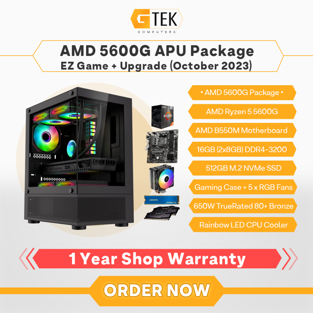 Gtek AMD Ryzen 5 5600G 16GB 512GB 650W EZ Game Upgrade Desktop Package