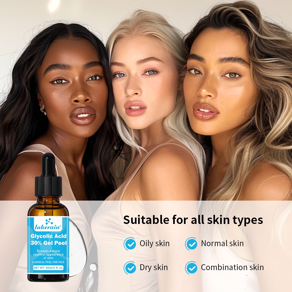 Lakerain Glycolic Acid 30% Gel Peel For Acne Blemishes with Chamomile And Green Tea Extracts, Collagen Boost, Wrinkles, Fine Lines ,Exfoliate Dull skin