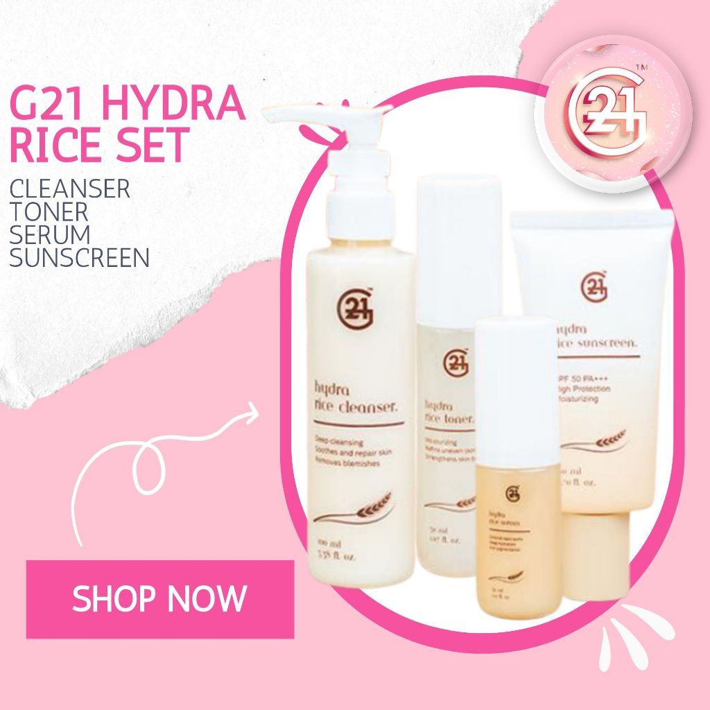 G21 Hydra Rice Set | Cleanser Toner Serum Sunscreen | Mild Facial Set