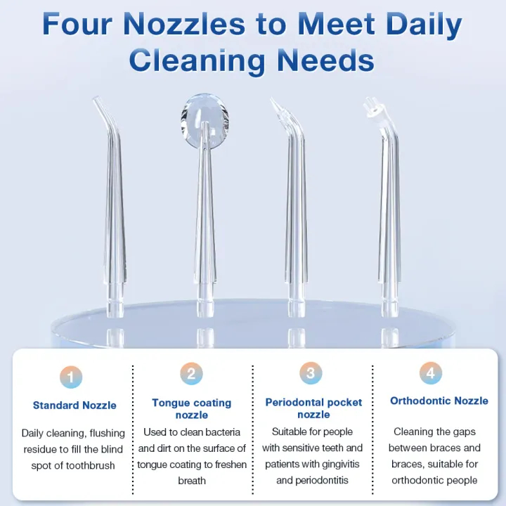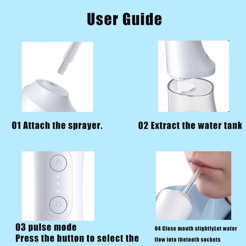 Water Flosser Oral Care Portable 300ml Large Water Tank Rechargeable Type-C 4 Types Of Nozzles