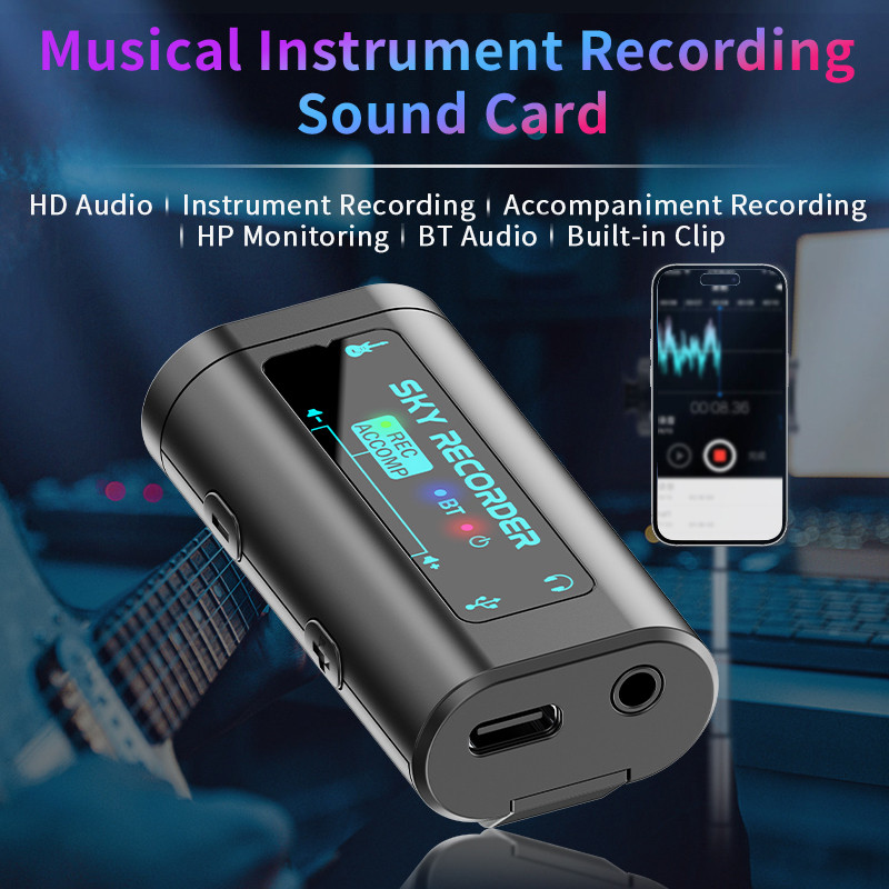 Guitar Audio Interface Pocket Internal Musical instrument Recording Sound Card with Type-C & Lightning for Recording by iPhone/Android/Laptop/Live Streaming Plug & Play