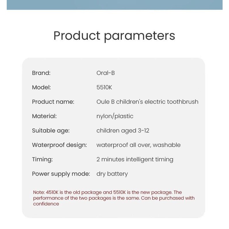 Oral B DB5510 Children Electric Toothbrush for Kids Ages 3+ Soft DuPont Bristles 7200 Times Rotation Min Dual Clean With AA Battery